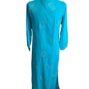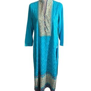Rita’s Saharan Women's 3-Piece Embroid Sequins Pakistani Slit Suit Blue Medium