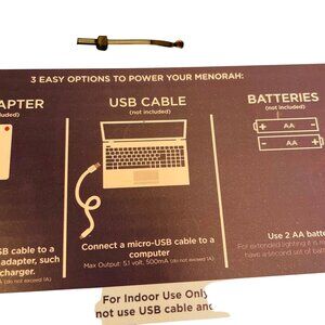 The Rite Lite Go Menorah is an electric LED menorah designed for convenience and versatility. It offers three display options and can be powered via an AC adapter, USB cable, or batteries. Ideal for indoor use, it provides a modern and safe alternative to traditional menorahs.