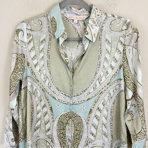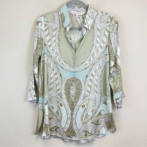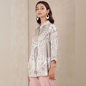 Ritu Kumar Paisley Satin Relaxed Button Down Shirt 3/4 Sleeves S