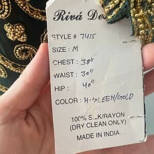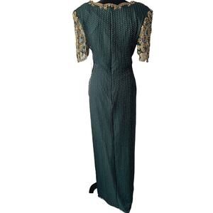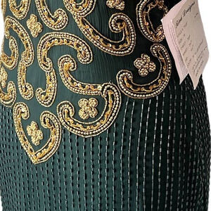 Riva Design Vintage 80s Silk Beaded Long Dress-Green/Gold-Medium-NEW-DEADSTOCK