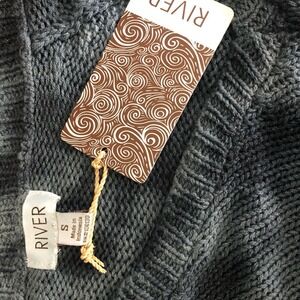 River Hand Dyed Cotton blend Sweater Small Navy V-neck NWT