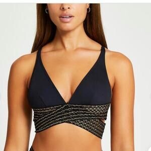 River Island Black Gold Bikini Top Size US 12 Swim Resort