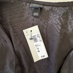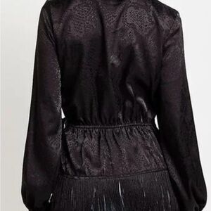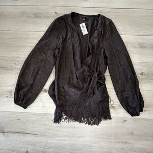 River Island Black Long Sleeve Wrap Fringe Hem Top Black US 10 NWT IN PACKAGING