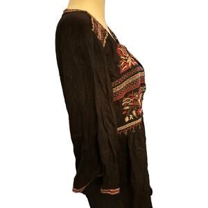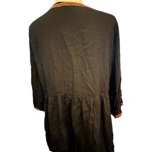 River Island Black Short Kimono Style Jacket, Size 14. River Island Black Short Kimono with string tie at waist. Rust and beige beading and embroidery on front peplum style waist.