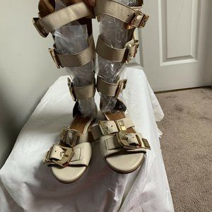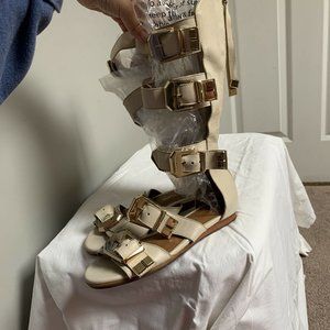River Island, Size 6 High leg Gladiator Sandal. Buckles are gold, light wear.