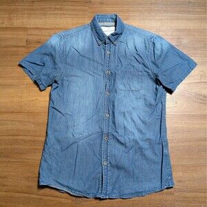 River Island Button Up Shirt Size Small Regular Fit Denim Chambray Casual