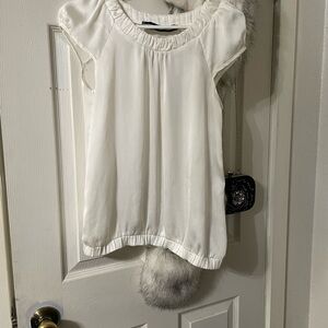 Chic River Island blouse in cream. Features a gathered neckline for a sophisticated look. Elastic waist, flutter sleeves, awesome fabric. This is such a beautiful top🩷