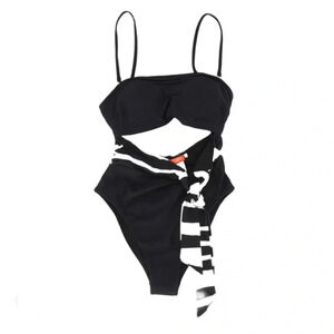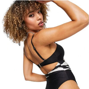 River Island Cut Out Tie Waist Bandeau One Piece Swimsuit Black Size 8 NWT