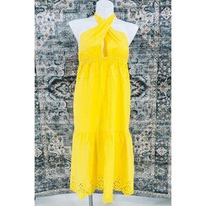 River Island Cutwork Halter Dress Yellow Size L Eyelet Trim Midi Length