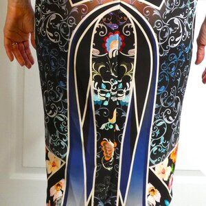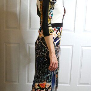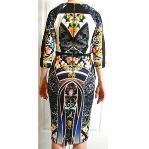 River Island Dress Wm Sz 8 Abstract Stretchy Unique Posh British Bombshell OOAK
