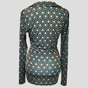 River Island Geometric Print Long Sleeve Tie-Front Button Collar Shirt Size 4