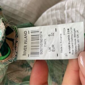 🌴 River Island Green Tropical Satin Skirt | Asymmetrical Ruffle Midi