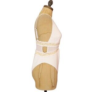 River Island High Apex One Piece Swimsuit Size 6 Deep V Sequin White Gold NWD B9
