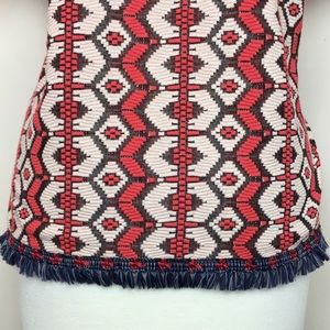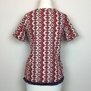 This geometric pattered jacquard t-shirt features a fun tassel hem. This shirt was purchased for a photoshoot but was never worn and is in perfect condition.