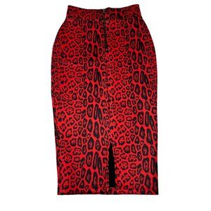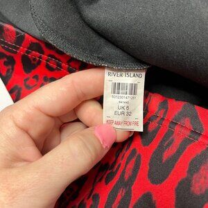 River Island Leopard Bodycon Skirt Red Zip Closure Stretch Size UK 6 US 2