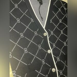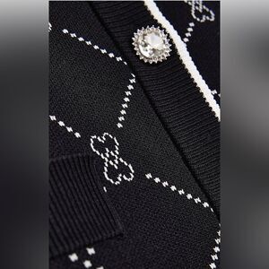 River Island London Black argyle Heart Knit Cardigan Sz 14