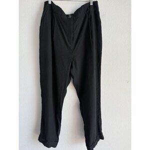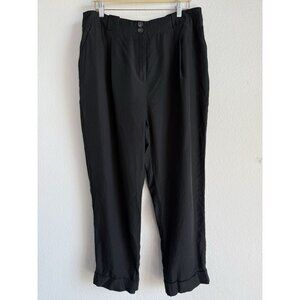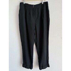 The River Island London Women's Black Pleated Trousers Pants in size 18 are a stylish and versatile addition to any wardrobe. These high-rise pants feature a solid black color with pleated accents, making them suitable for both casual and formal occasions.