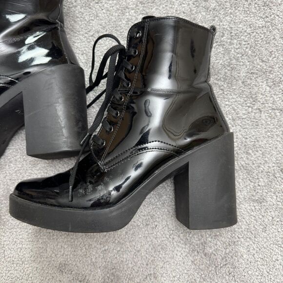 River Island Patent Leather Chucky Platform Lace Up Combat Heeled Boots 7 Black