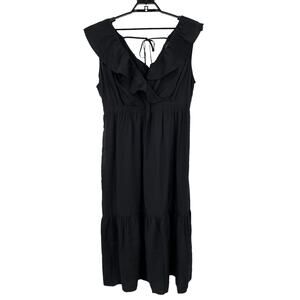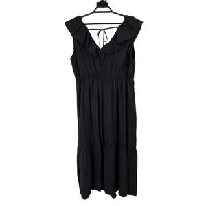 River Island Plus dress ruffle smock maxi black size 20 E1265