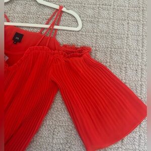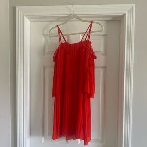 River Island Red Plisse Chiffon Cold Shoulder Swing Dress NWT