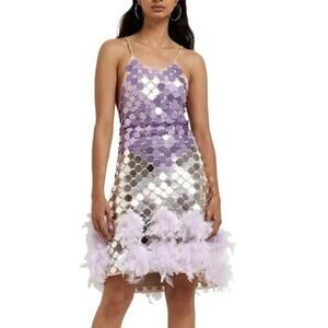 River Island Sequin Disc Faux Feather Backless Dress Light Purple Size 8 NWT