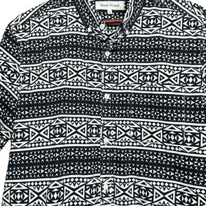 River Island Size Large Short Sleeve Button Down Geometric Graphic Aztec