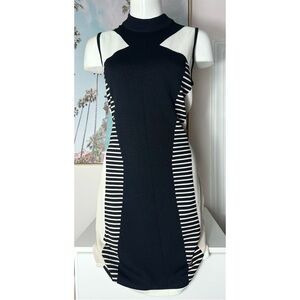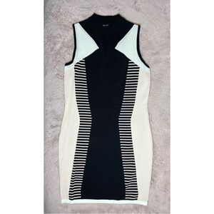 River Island White Black Geometric Stretch Bodycon Sweater Dress Size 12 Large