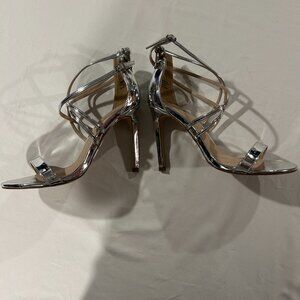 River Island Wide Fit Metallic Cross Strap Barely There Silver EU 41
