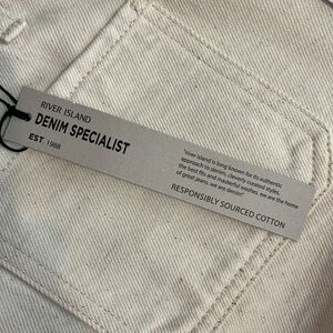 River Island Wide Leg High Rise Button Front Jeans Ecru Off White NWT Sz 6 US