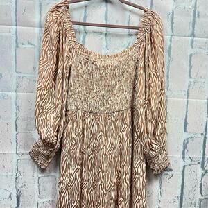 River Island Womens 100% Viscose Size 10 Brown Animal Print Shirred Midi Dress
