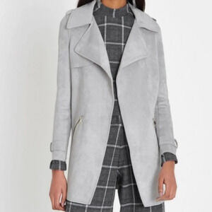 River Island Women's Gray faux suede Longline Overcoat Size S