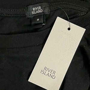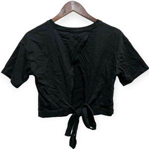 River Island Women's Size 4 | Small Short Sleeve Round Neck Tie Open Back Black