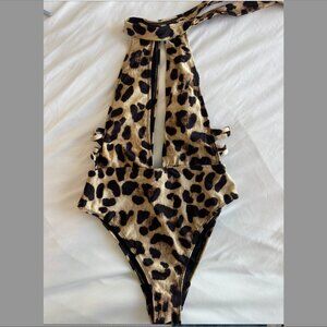 River Island halterneck swimsuit with cut out detail in leopard print UK 8/ US 6