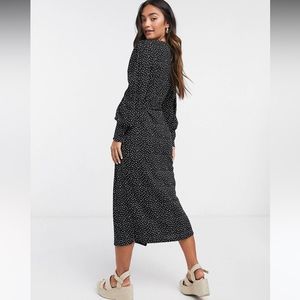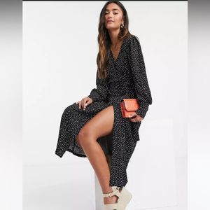 River Island polka dot wrap midi dress in black Uk 10 or US 8