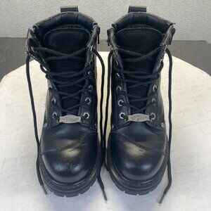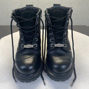 River Road Chunky Motorcycle Booties Size 6 Black Leather Double Zip Biker Boots