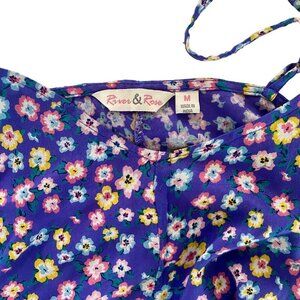 This River & Rose Blue Floral Print Midi Dress is a fresh, feminine style staple. Crafted in 100% Rayon, it features adjustable spaghetti straps and convenient pockets. New without tags, women's medium.