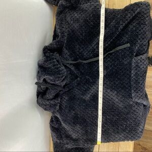 Really soft warm and cozy, this black textured fleece hoodie with front slip hand pockets is in excellent pre-owned condition. Women's size medium. See photos for details and measurements.