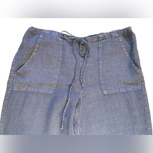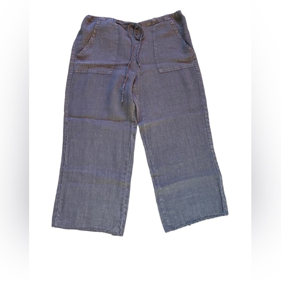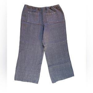 River + Sky Crop Linen West Coast Wide Leg Purple/Gray Drawstring Pull On Pant M