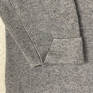 Like new condition. 48% wool. Soft and warm. Unique cuffs that can be flipped back or worn over the hand in colder weather. Classic crew neck and neutral gray. Hangs straight - no bunching at the waist.