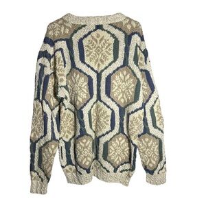 River Trader Hand-Knit Vintage Snowflake Sweater • XL • Cozy Winter Cable