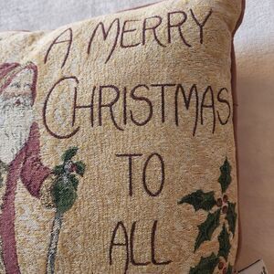 Riverdale Decorative Christmas Santa Pink Tapestry Pillow, in perfect condition. measures aprx. 17" X 17"