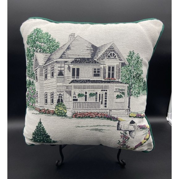 Riverdale Decorative Tapestry Throw Pillow Victorian House Christmas Theme 15"