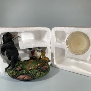 Hand painted poly, resin, cute realistic, wildlife design, great for cabin or home vote of candle and glass holder included