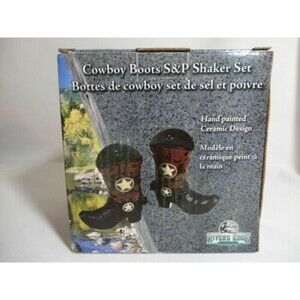 Rivers Edge Cowboy Boots Ceramic Salt Pepper Shakers Western Stars Kitchen Gift