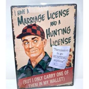 Rivers Edge Home Shop Decor Marriage And Hunting License Waterproof Tin Sign NEW