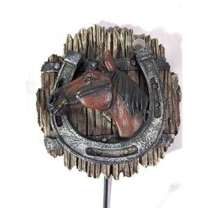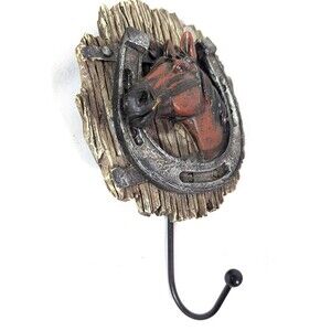 River's Edge Horse and Horseshoe Wall Hook. Barnwood style in stoneware material with metal hook.