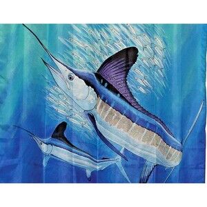 River's Edge Marlin Shower Curtain by Guy Harvey Polyester 70 x 72-in Bath Gift