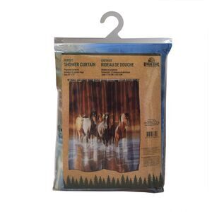 Rivers Edge Rush Hour Horses Fabric Shower Curtain. Fabric: Polyester. Measurement: 70" x 72".