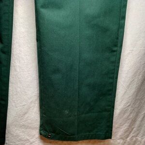 The Riverside coveralls jumpsuit is a vintage, green canvas garment made from a polyester cotton blend material. Designed as a unisex piece in medium/large size, it features short sleeves for comfort during work activities. This high-quality workwear is manufactured in the United States, catering to the mechanic industry with a durable and practical design suitable for various tasks.
