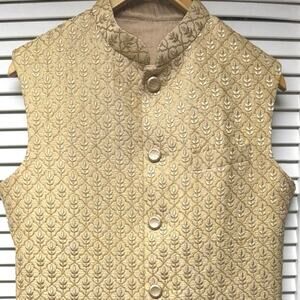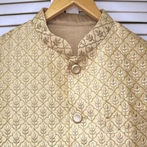 Rivesse Indian Waistcoat Bandi Nehru Jacket Gold Metallic Thread Mens Medium